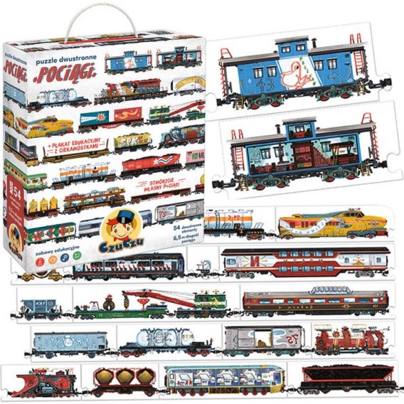 Puzzle dwustronne Pociągi to idealna zabawa dla dzieci. Puzzle można łączyć na różne sposoby, tworząc przy tym własne składy ! Ruszaj we wspaniałą przygodę !!!